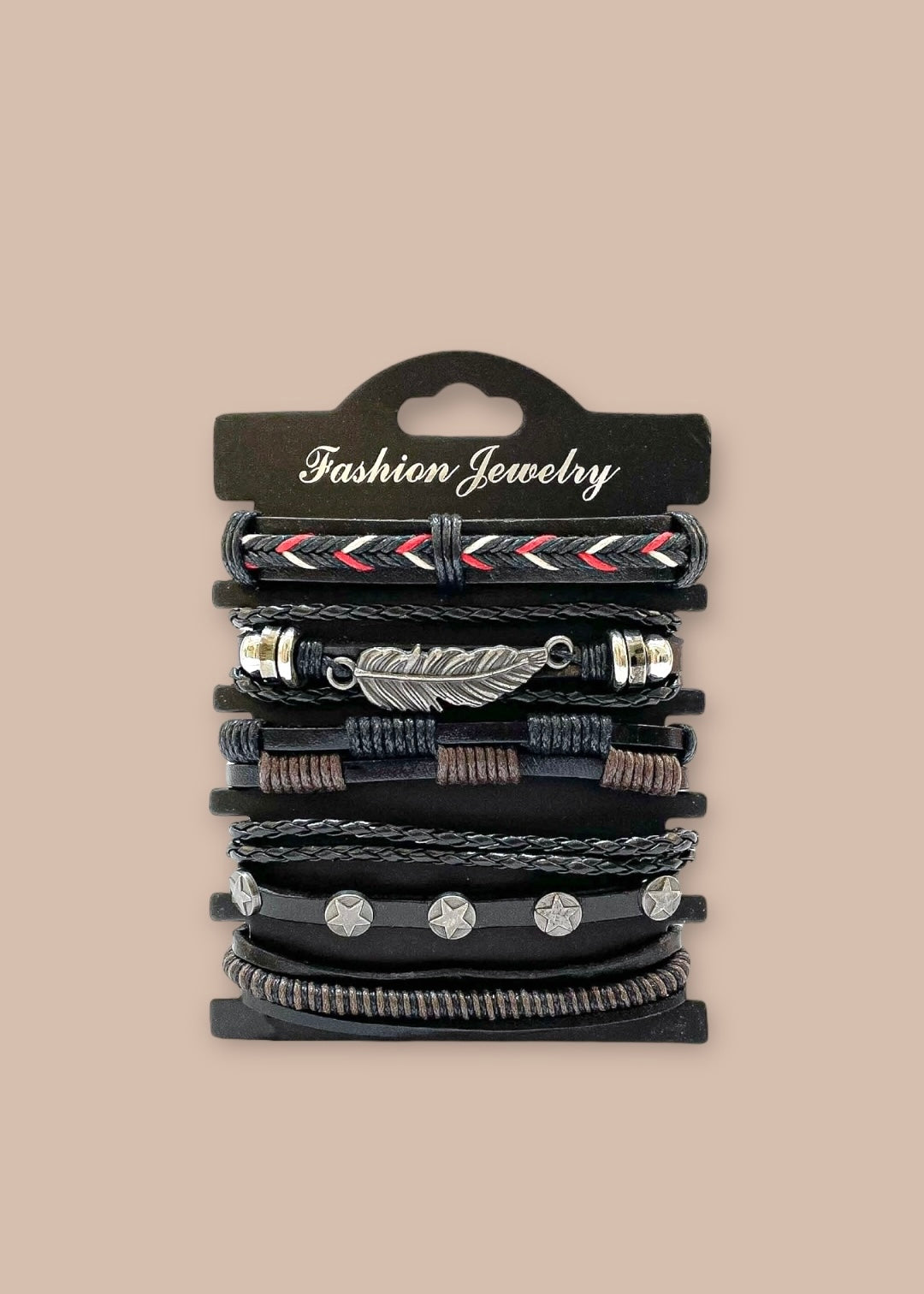 Composición: 5 pulseras en un cartón. Son ajustables.