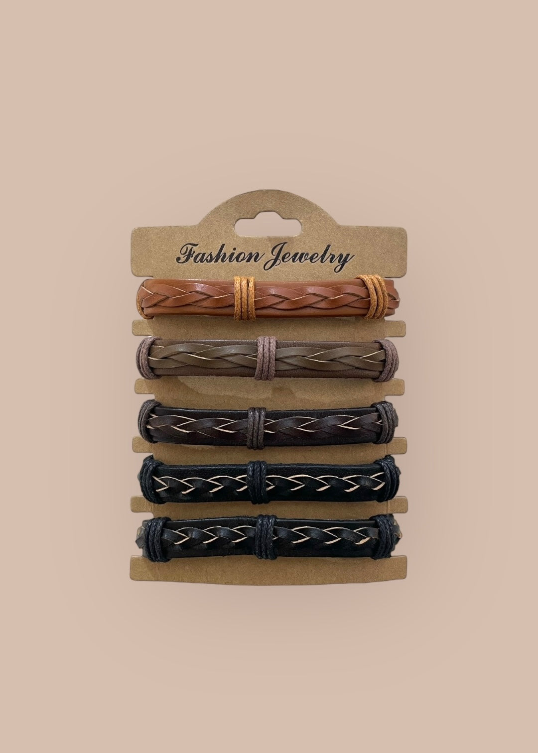 Composición: 5 pulseras en un cartón. Son ajustables.