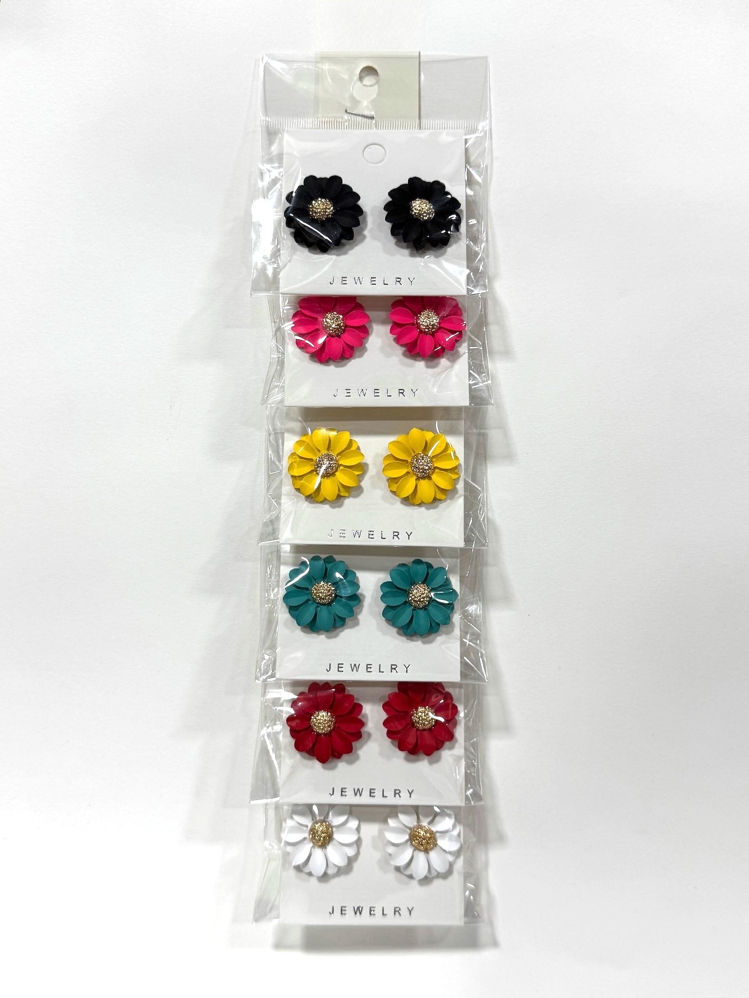 Composición: 6 pares de aros de flores en una tira de cartón.