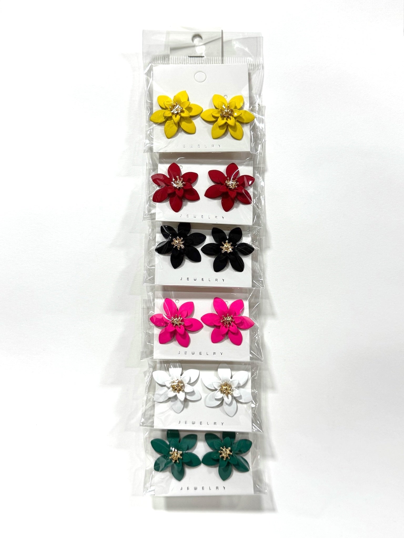Composición: 6 pares de aros de flores en una tira de cartón.