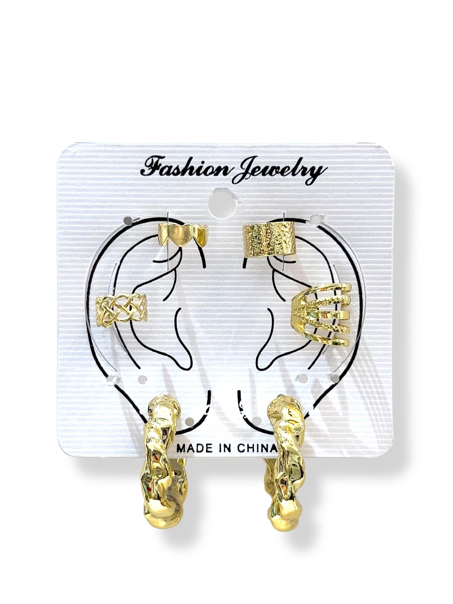 Composición: 4 earcuff y 1 par de aros en un cartón.
