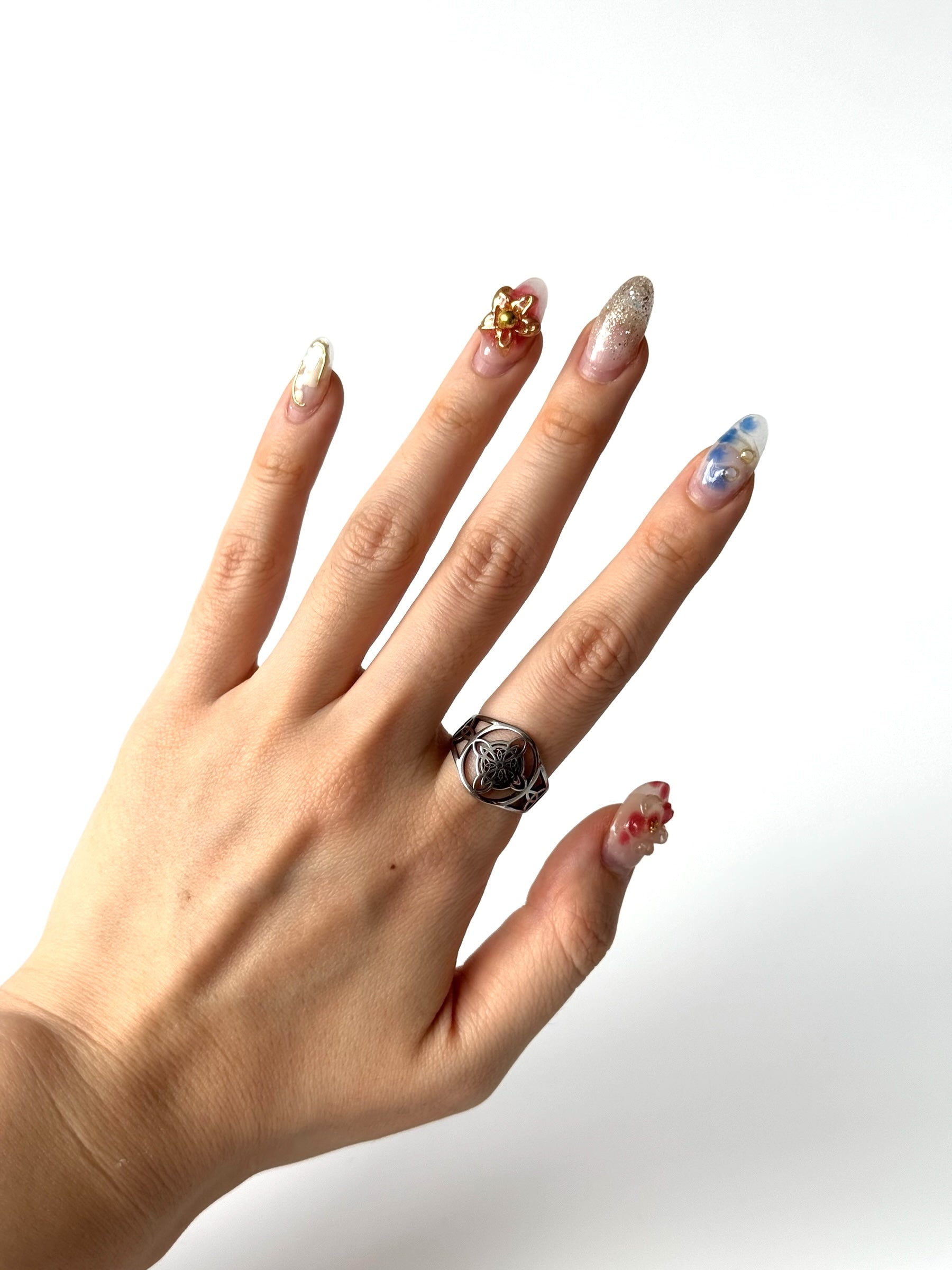 Presentación: 12 anillos en una caja. Vienen surtidos los diseños y tamaños. Los diseños se repiten de manera al azar.