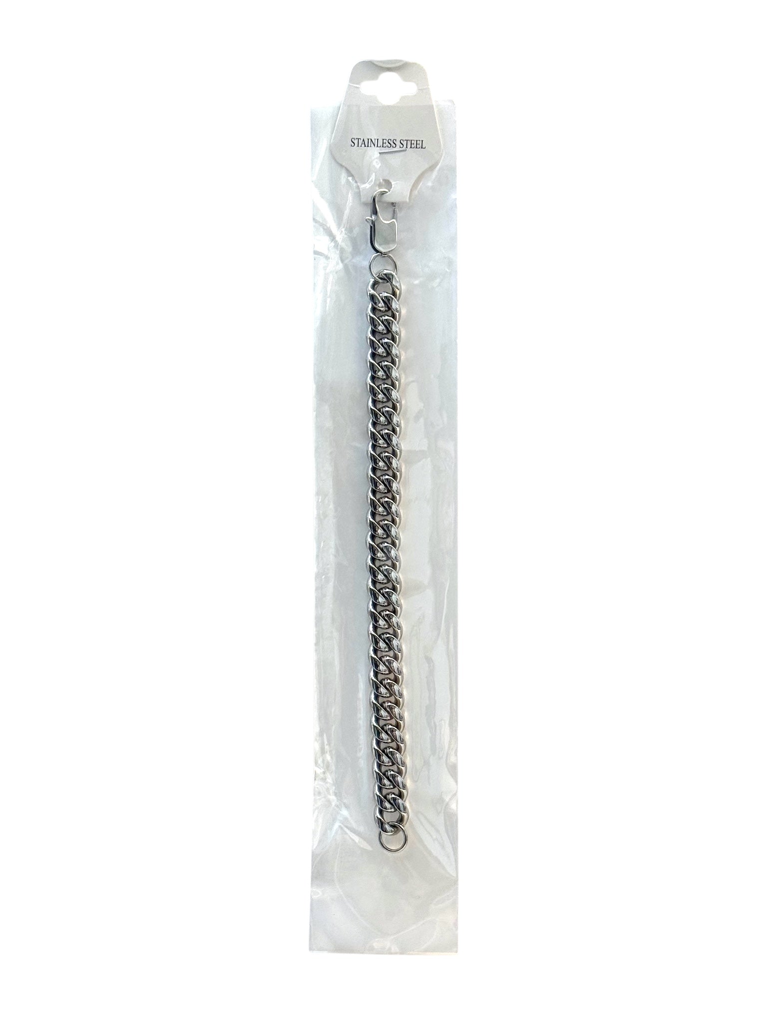 Pulsera de cadena de acero modelo #62_cubano plateado 12mm H-1