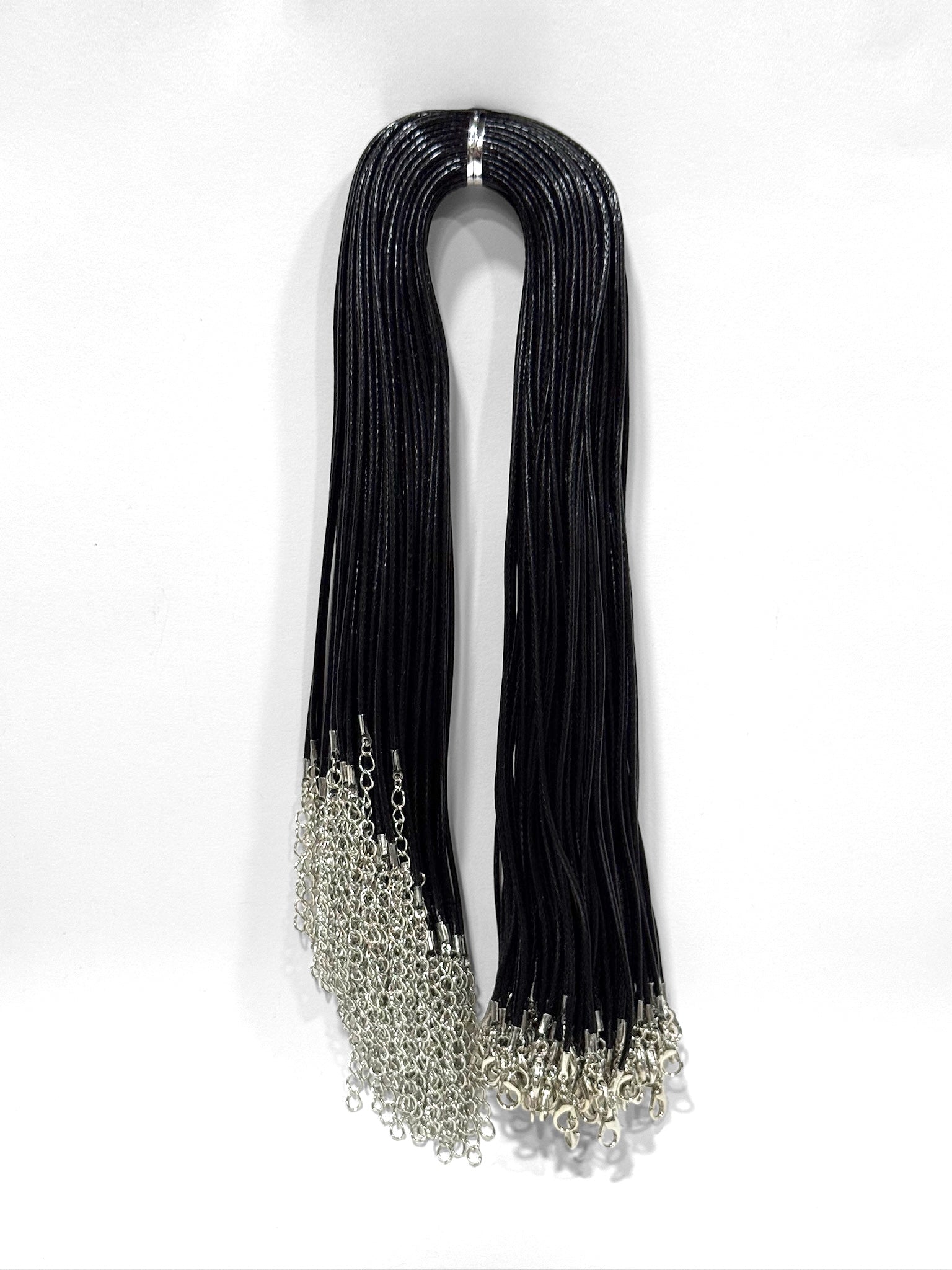 Pack de 100 unidades de cadena de cuero sintético. El largo de collar es de 50cm