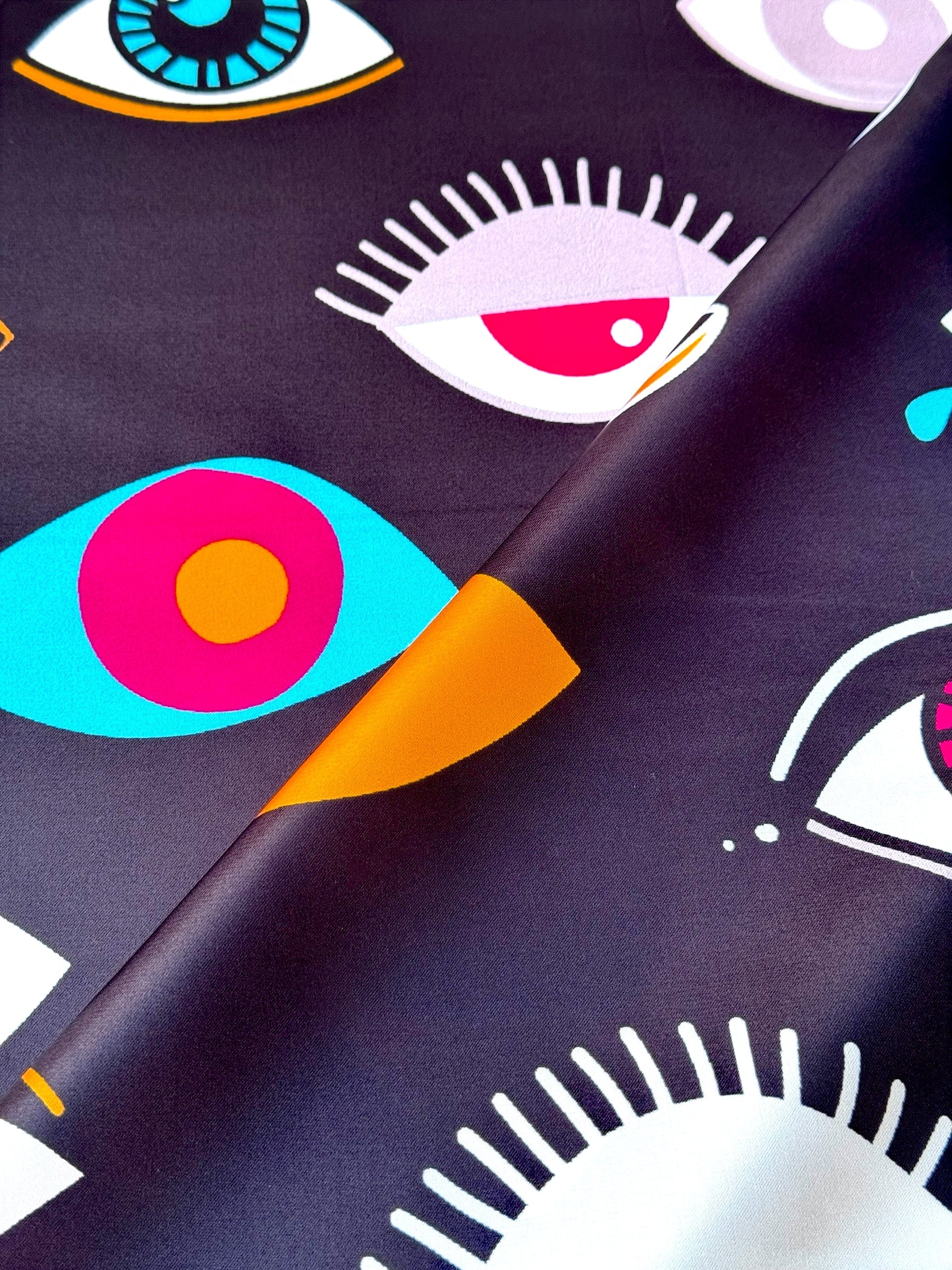 Material: Imitación seda. Impresión de una sola cara. Buena calidad de impresión.