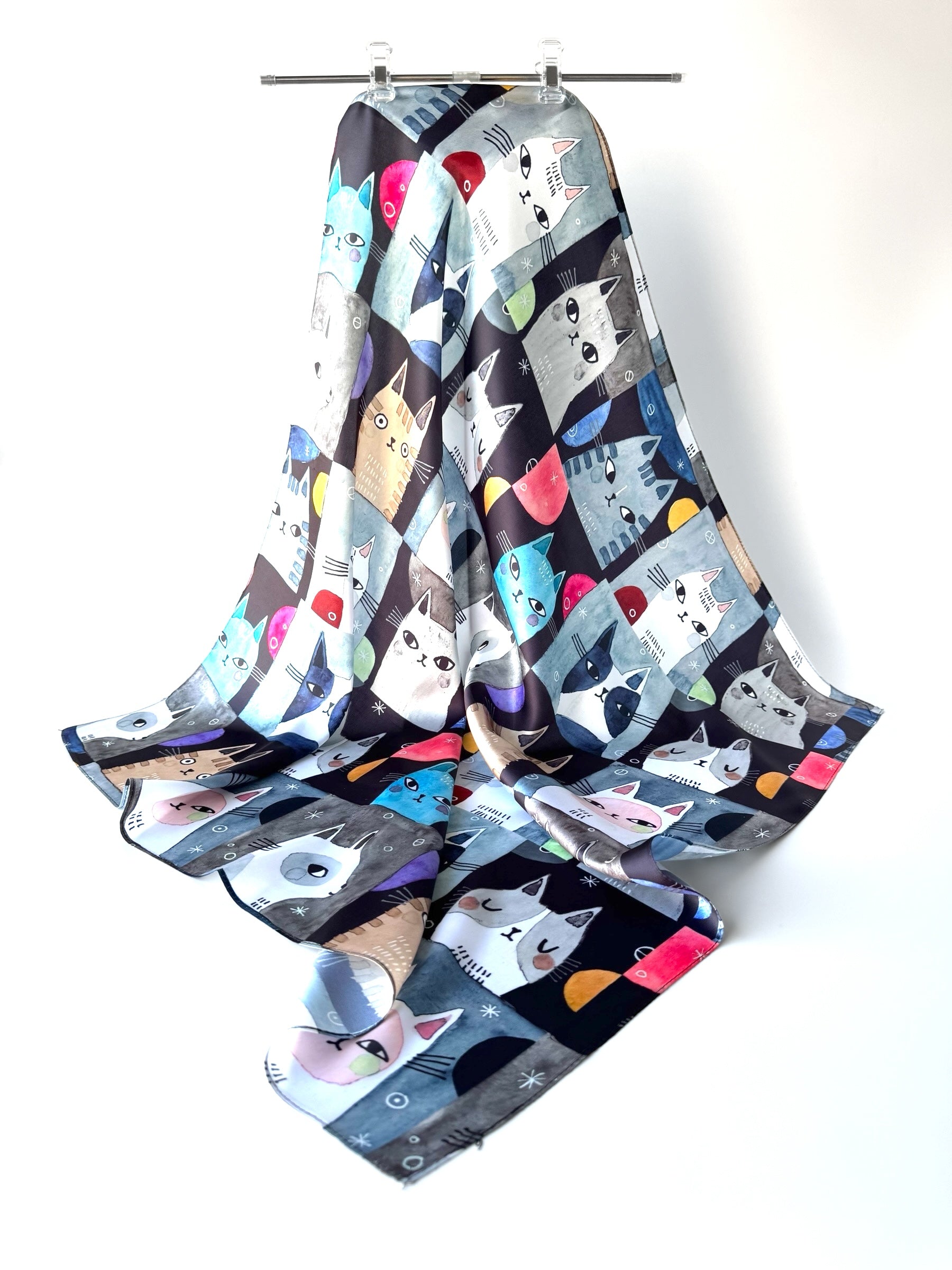 Material: Imitación seda. Impresión de una sola cara. Buena calidad de impresión.