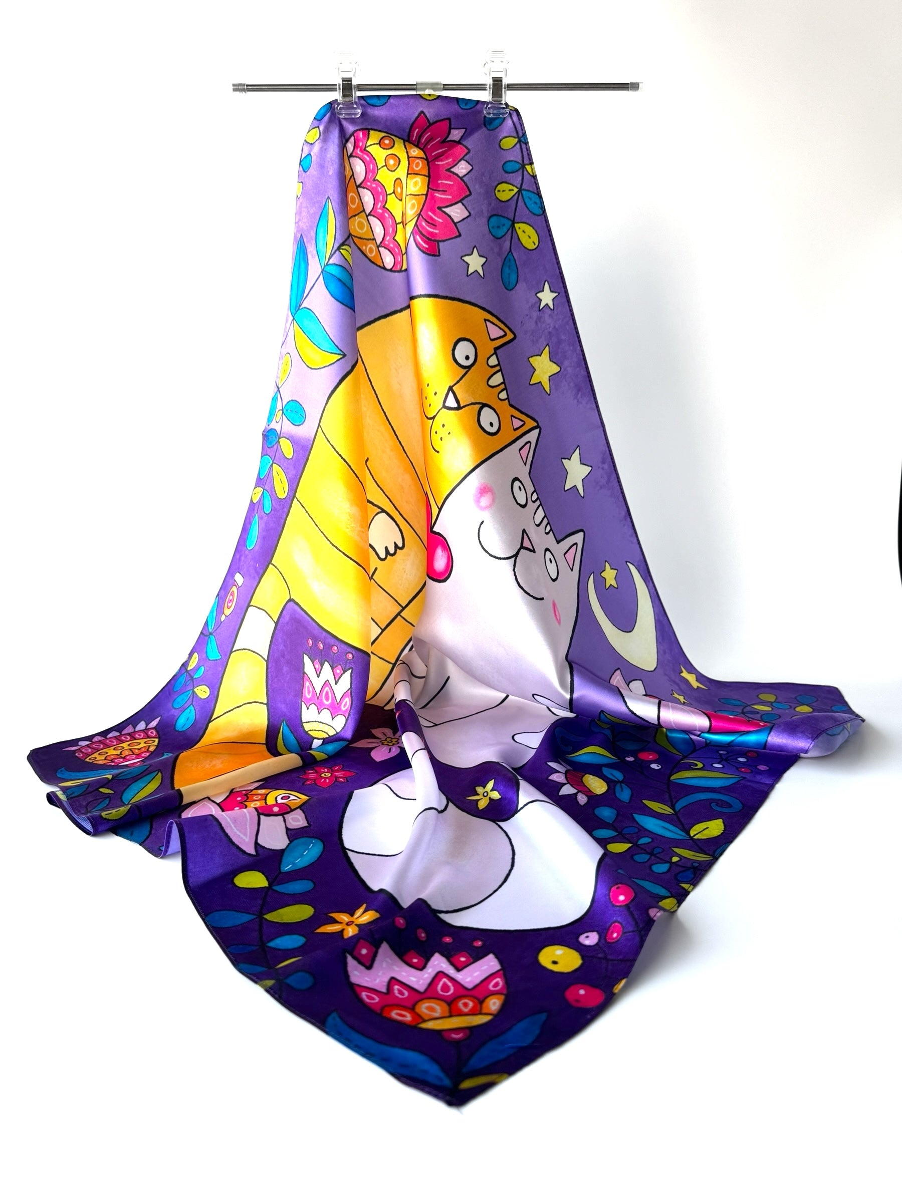 Material: Imitación seda. Impresión de una sola cara. Buena calidad de impresión.