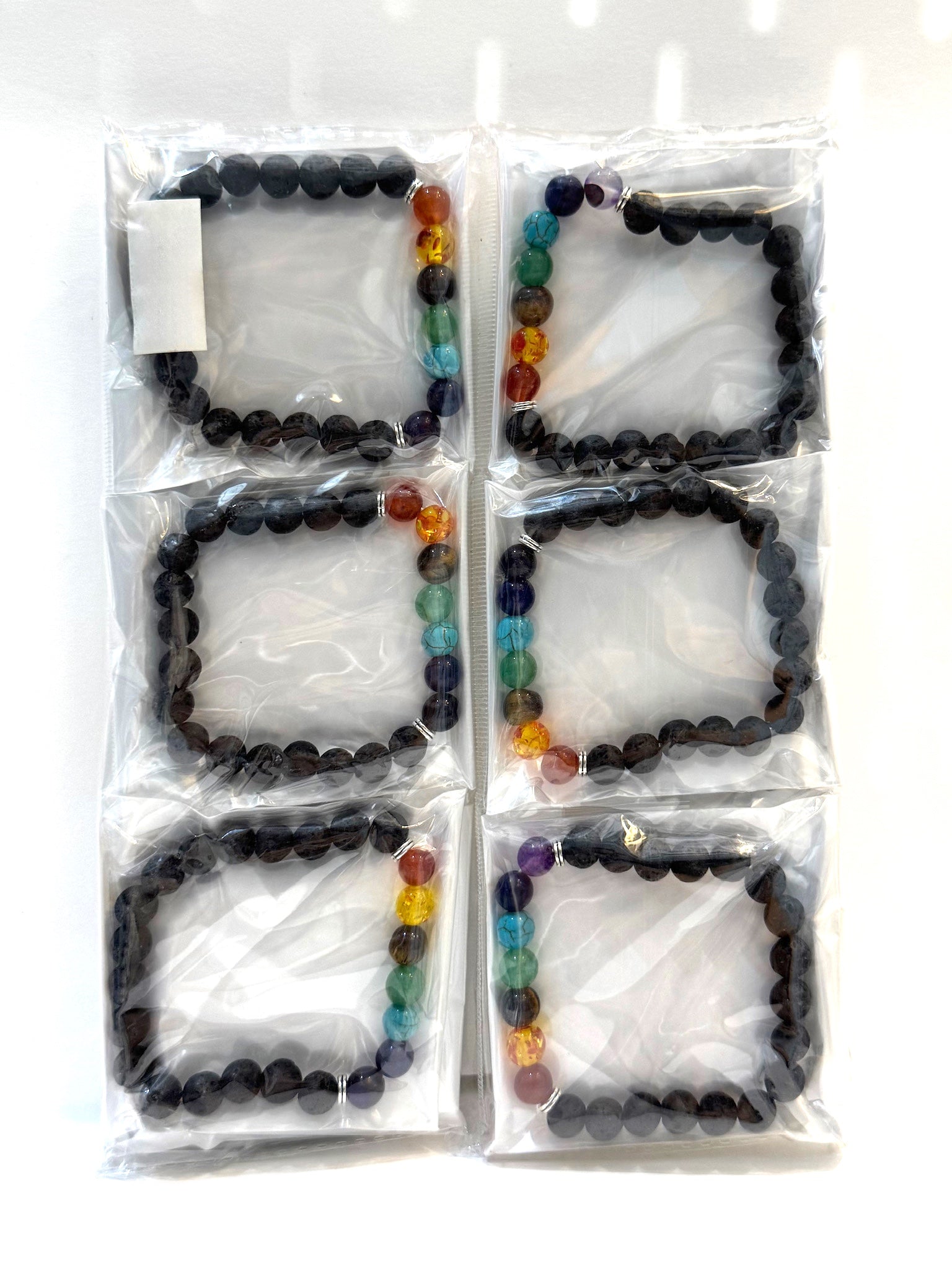 Presentación: 12 pulseras en un paquete, cada una empacado en bolsa plástica.