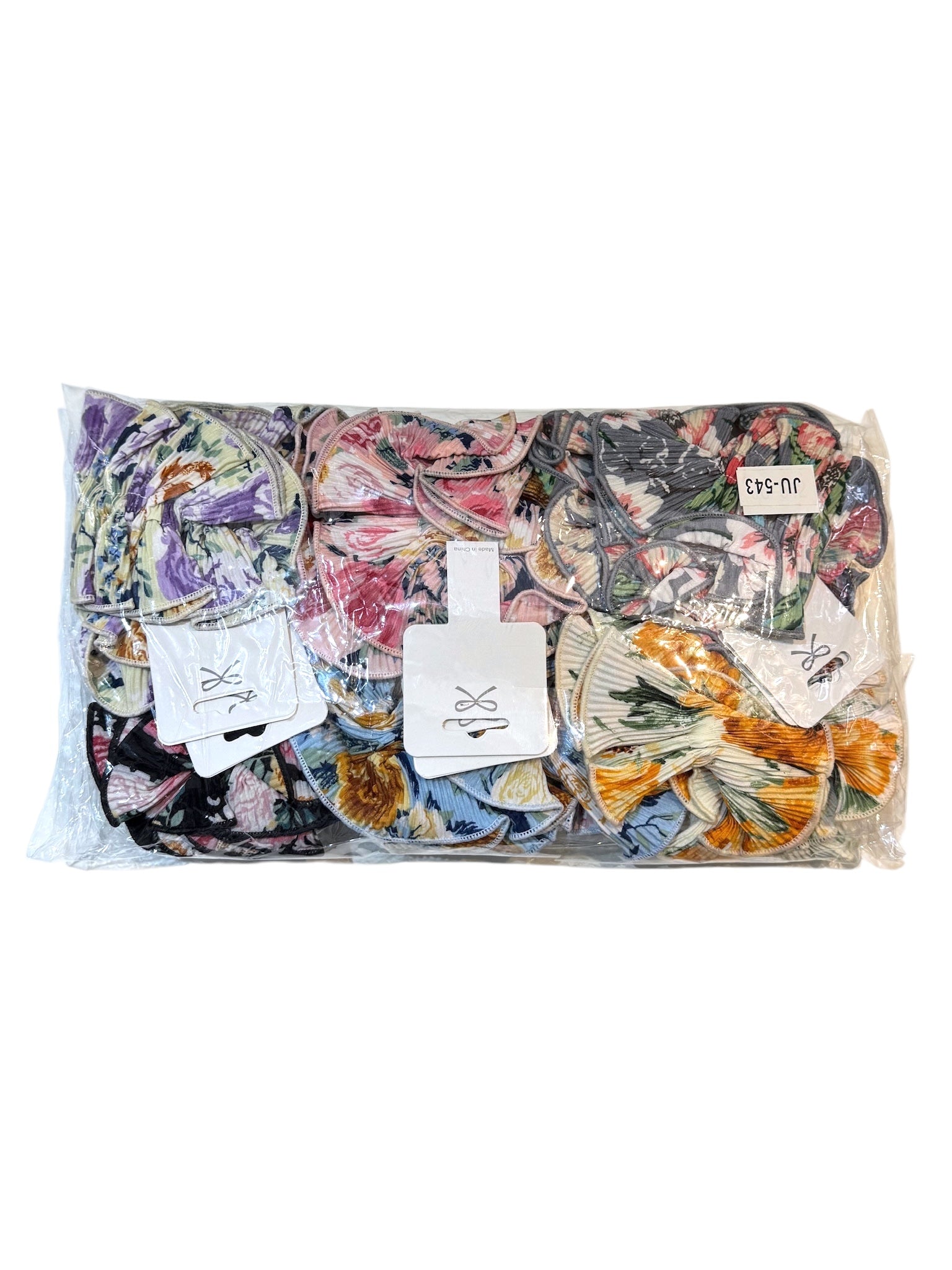 Composición: 12 scrunchies en una bolsa plástica. Vienen 2 scrunchies por color, son 6 colores. No son elegibles.